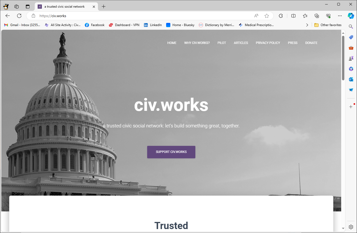Our core application, https://social.civ.works is in an early pilot phase with important features and functionality still being designed and built. A two-minute animation provides a overview of our vision for the core civic social network:
