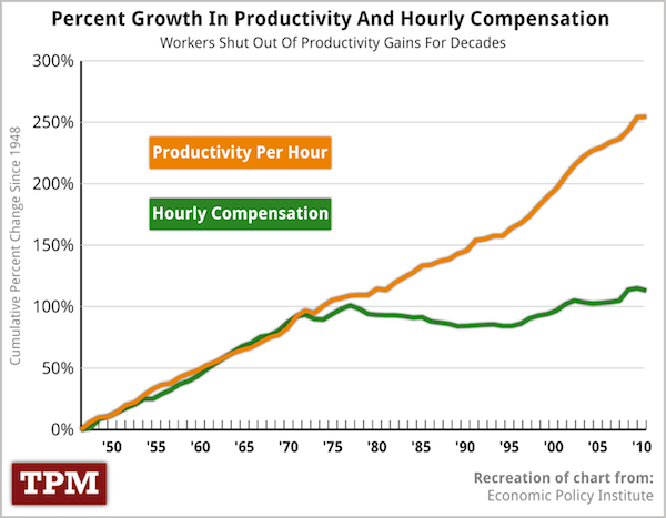 In 2016 (not pictured) –for the first time in many years –due to President Obama’s economic policy –worker wages were beginning to track upward aligned with worker productivity. (Thanks Obama!).