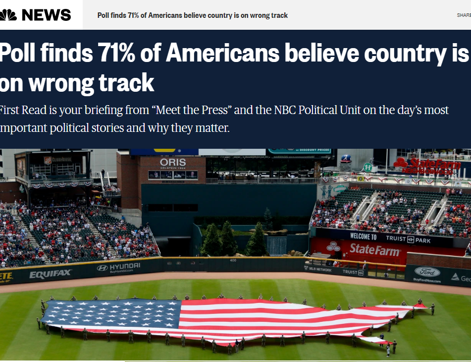 I occasionally see a poll reflecting whether Americans believe we are “on the right track” as a nation.