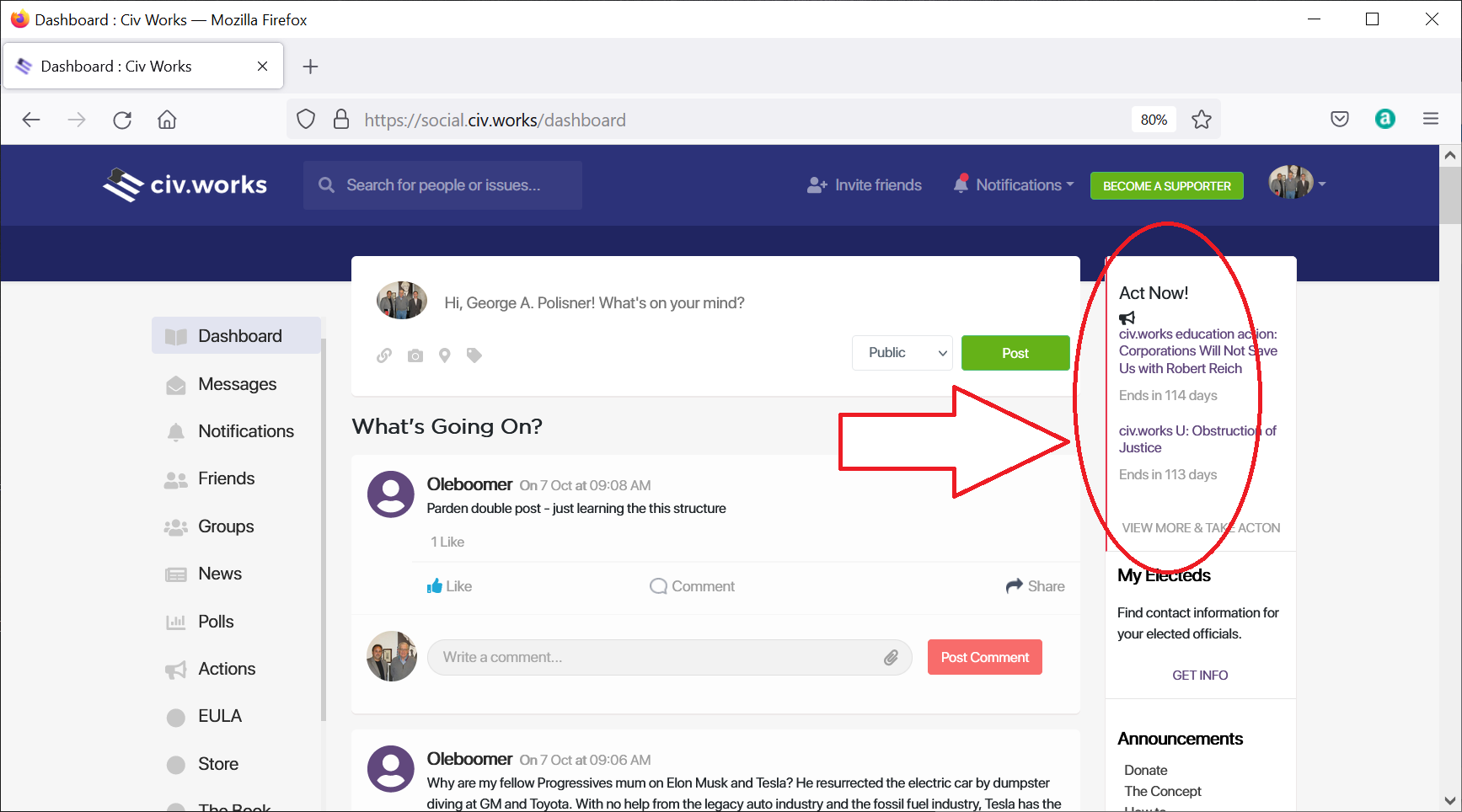The core concept of Civic Works is to provide an advertising-free, subscriber-funded, social network built for civic action in support of participatory democracy and participatory budgeting. A platform that is built to support respectful conversations and friendships across ideological boundaries predicated upon facts, evidence, and science. We want to promote a competition of ideas to improve the quality of life for all in which can lead to agreements that can then be codified into law and policy.