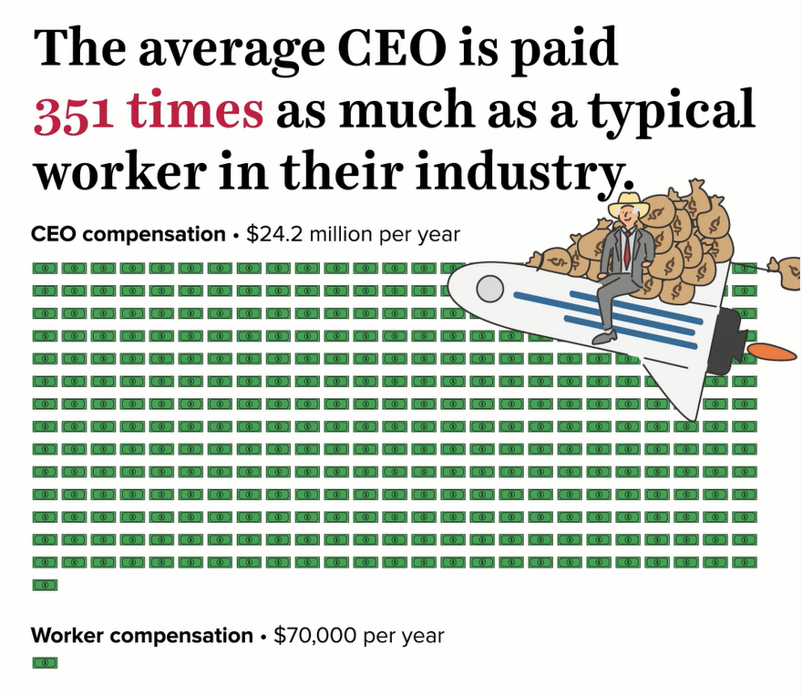 Over the last 45 years, non-executive pay flattened while productivity soared—and the entire difference was extracted by the wealthy one-percent through executive pay, stock buybacks, and investor dividends.